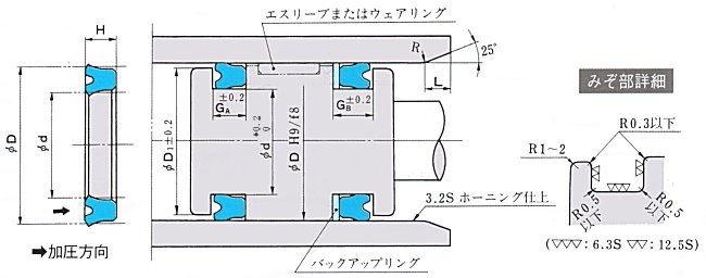 Packings have a directional nature as in the above drawing. Be careful of the direction when instaling.